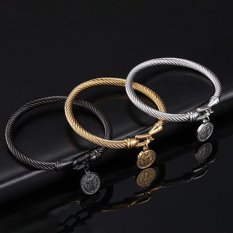 Stainless Steel Scripture & Cross Bangle Bracelet